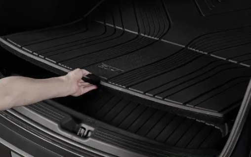【亮點:科技感設計與獨家收納隔板】 來自設計師品牌 HALOBLK,這款行李箱墊在美感與功能性之間取得了完美平衡。除了採用高品質 TPE 一體成型、精準 3D 掃描開模外,其最貼心的特點是套組常附贈「專用行李隔板」。這個隔板能與墊子的幾何紋理完美結合,幫助車主在寬敞的特斯拉後車廂中分隔雜物,避免物品在加速或轉彎時左右滑動。對於同時要求「內裝顏值」與「收納秩序」的科技型車主來說,黑洛是最具現代感的選擇。