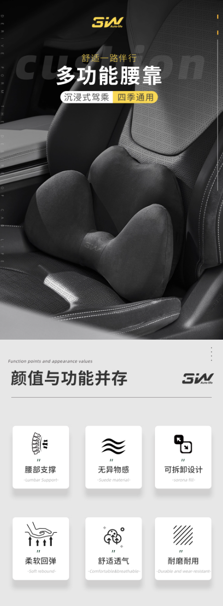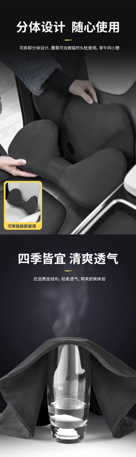 可拆卸分體設計 腰靠可當作臨時頭枕使用